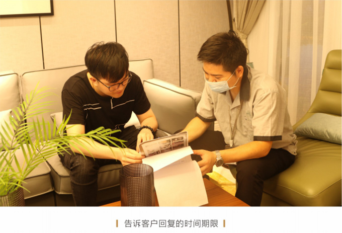 上門現(xiàn)場(chǎng)查看情況后,確定是補(bǔ)件或維修或返廠,并告知客戶大概需要多久時(shí)間能夠解決完問題并真誠(chéng)地表示歉意。