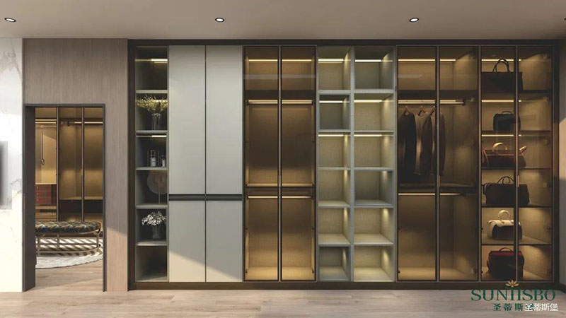 衣帽間開放式置頂設(shè)計(jì),在追求簡(jiǎn)單到極致的基礎(chǔ)上,給人感官一種簡(jiǎn)約整潔的整體感受。打破常規(guī)的空間儲(chǔ)藏方式,脫離一切浮華與不實(shí)用,僅用最簡(jiǎn)單的線條反映出主人優(yōu)雅的高品味。