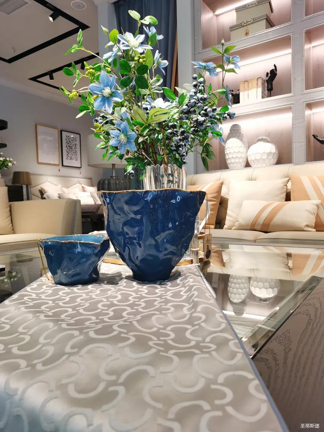中國(guó)傳統(tǒng)陶瓷藝術(shù),尤見裝飾匠心。表面凹凸,深淺海藍(lán)交錯(cuò),倒映出海面迎風(fēng)起波的場(chǎng)景,深邃沉靜。