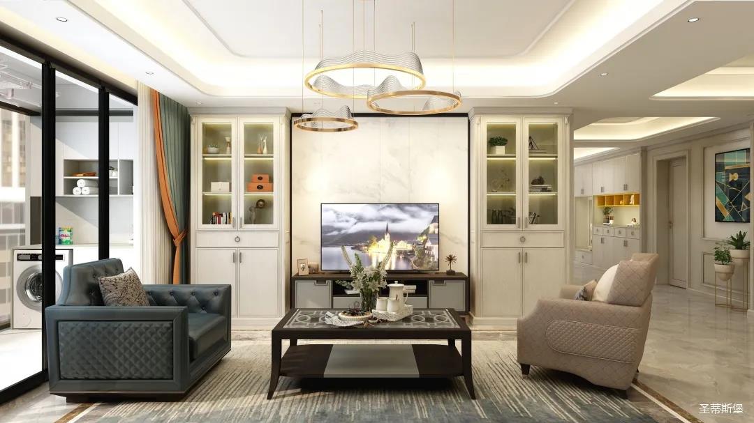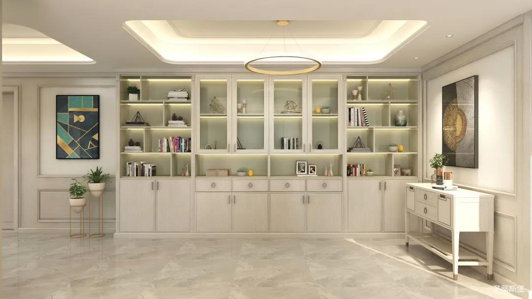 ▲?電視背景墻設計師完全根據(jù)業(yè)主家量尺所得,安裝的對稱裝飾柜,集裝飾美與實用性于一體,業(yè)主超喜歡收藏,設計師也完全滿足了業(yè)主對空間儲物的需求。