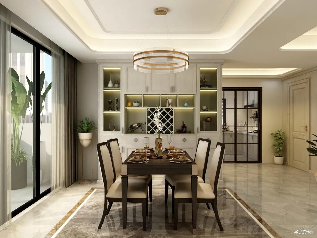 ▲餐廳定制了餐邊柜,作為家庭生活浪漫的主要基地。菱形的小格子間滿足了男主人收藏美酒的喜好,可視區(qū)域也逃不掉女主人收藏瓶瓶罐罐的藝術(shù)品。