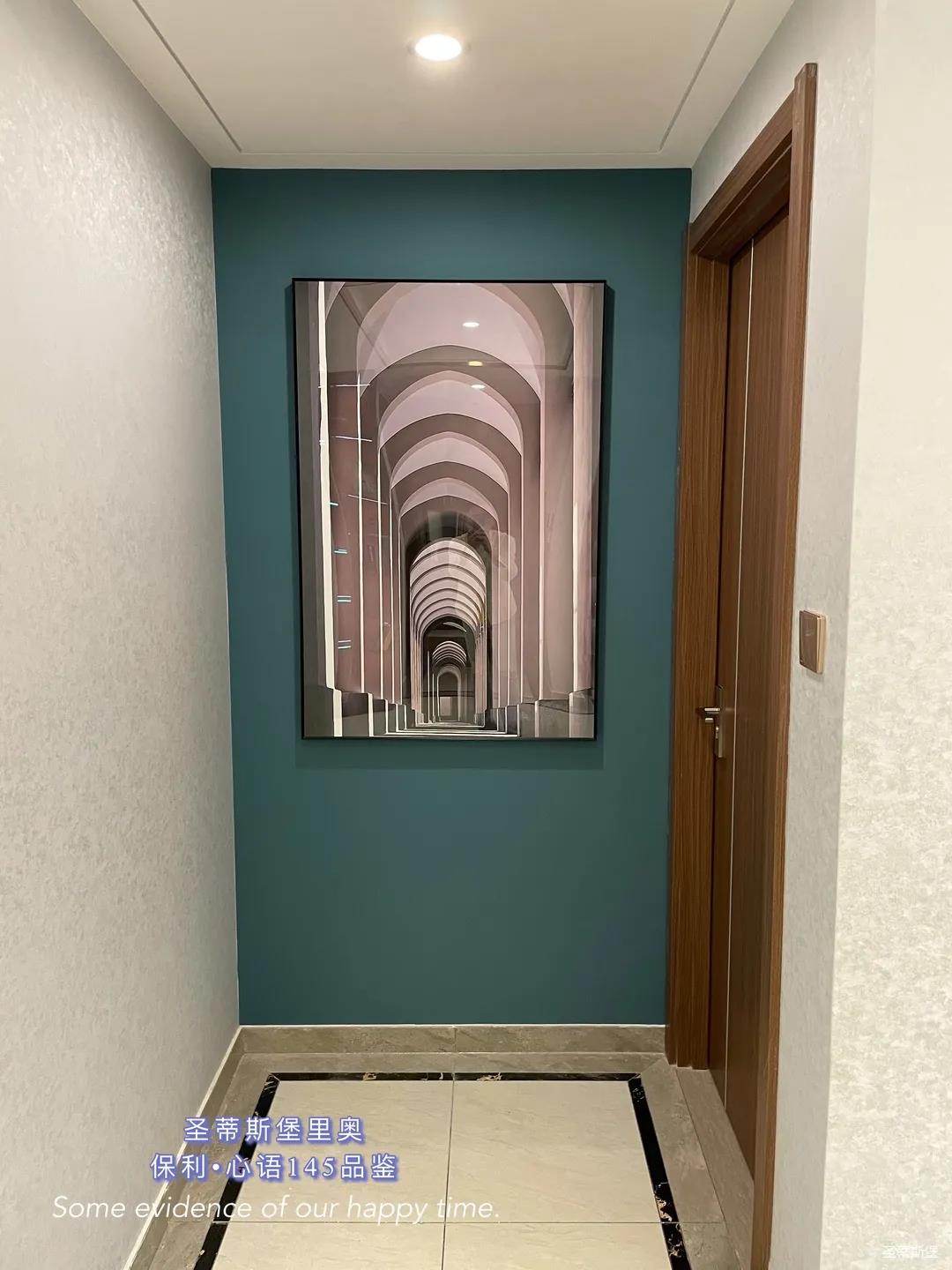 ▲進(jìn)門有個(gè)小過渡“玄關(guān)”,幾步就可到客餐廳中心區(qū),由于玄關(guān)空間較小。所以以一幅抽象畫直接營造入戶氛圍!