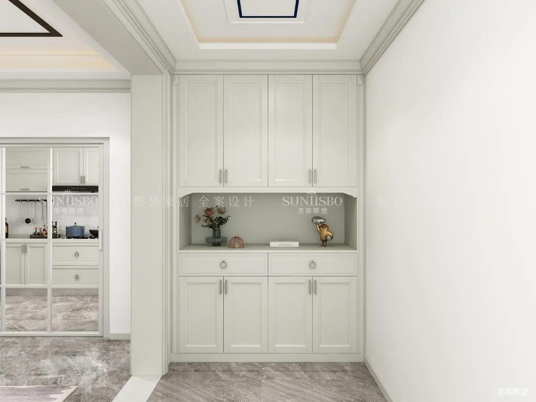 玄關(guān)整體遵循了對(duì)稱(chēng)美的設(shè)計(jì),仿古白柜體在留白區(qū)域的襯托下,產(chǎn)生了若隱若現(xiàn)的隱形美。柜體儲(chǔ)物功能強(qiáng)大,中空部分可以放置入戶(hù)零碎物品。貼心的設(shè)計(jì)讓出入戶(hù)隨即變得方便又舒適。