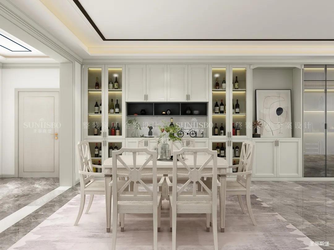 在快節(jié)奏的當(dāng)下,我們也可慢下腳步體驗(yàn)一把“輕奢”生活,餐廳絕對(duì)是最佳地點(diǎn)!根據(jù)房屋本身的設(shè)計(jì),它擁有著大空間的優(yōu)勢(shì),設(shè)計(jì)師將自然的材質(zhì)紋理融入膚感界面,與整體空間相得益彰,配合著實(shí)木+玻璃柜門(mén)來(lái)展現(xiàn)用餐時(shí)的“輕奢魅力”。