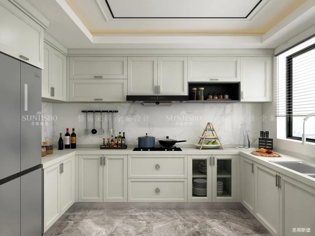 廚房從屋主的飲食習(xí)慣出發(fā),運(yùn)用溫柔的莫蘭迪色彩(仿古白)打開(kāi)了美式櫥柜定制的新世界!在美式輕奢的基調(diào)上,進(jìn)行線面模塊的靈活組合,在滿足廚房基本需求的同時(shí)也將儲(chǔ)物優(yōu)勢(shì)傳達(dá)到每一細(xì)節(jié)處。
