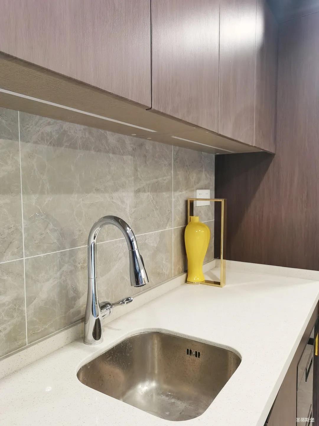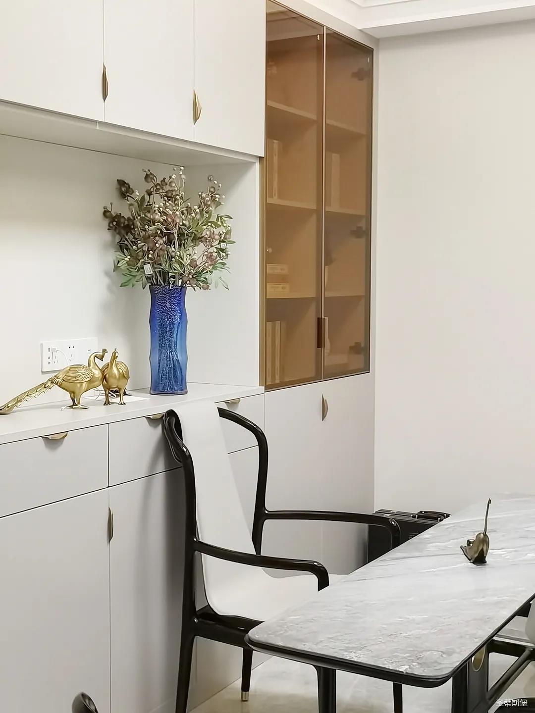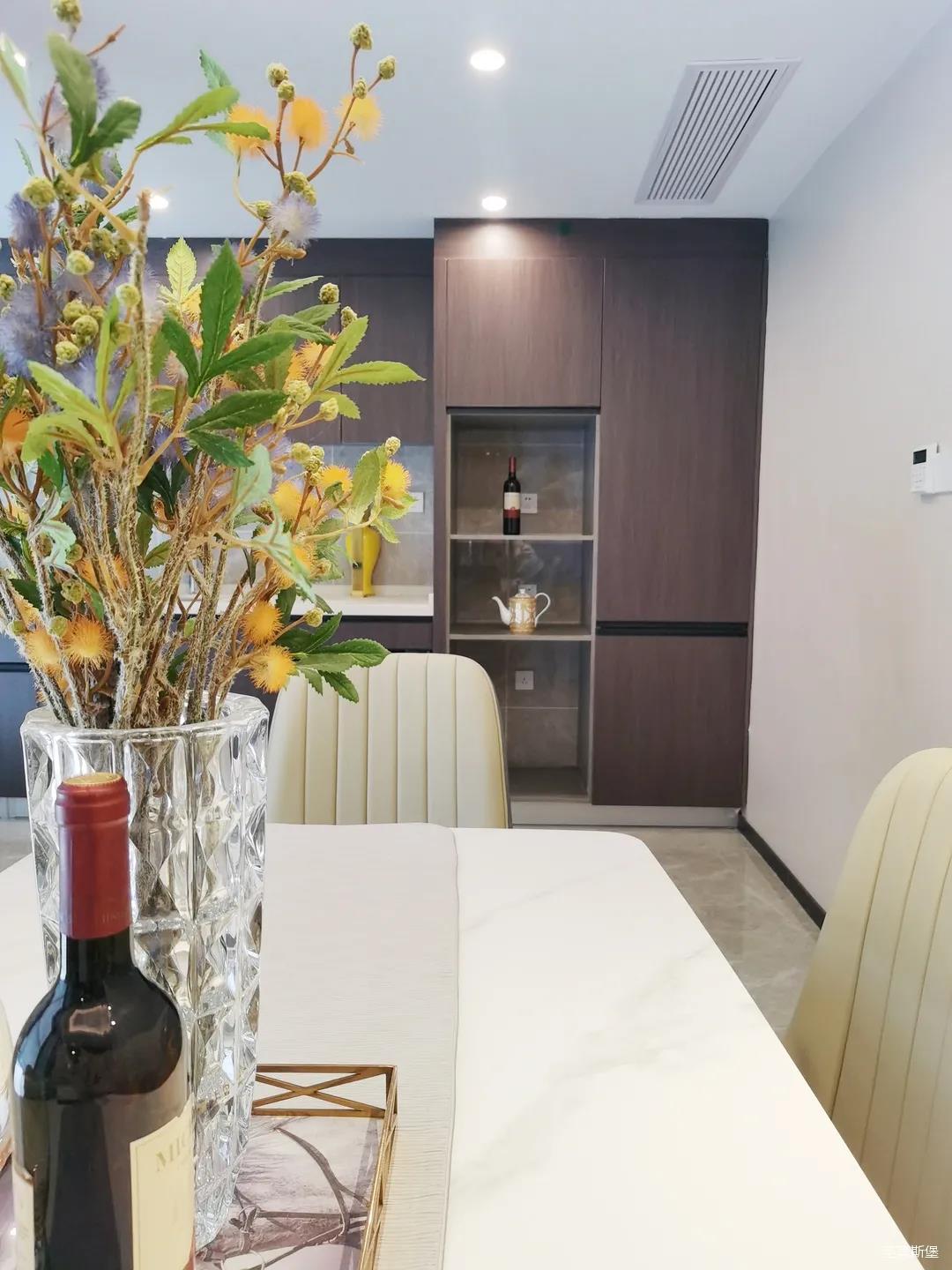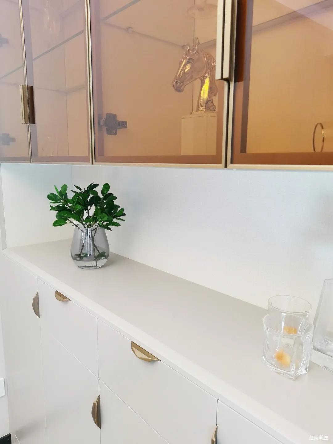 開放式的餐廚設(shè)計(jì)讓餐邊柜和櫥柜的居家動(dòng)線更為流暢,成了最便利的收納場所,生活小資而又美好。