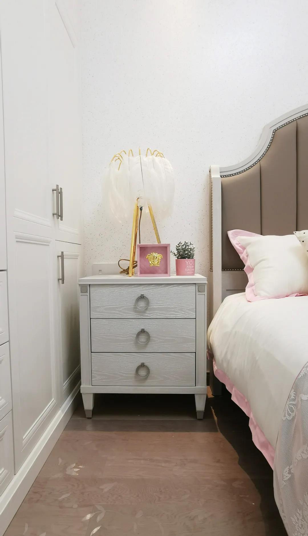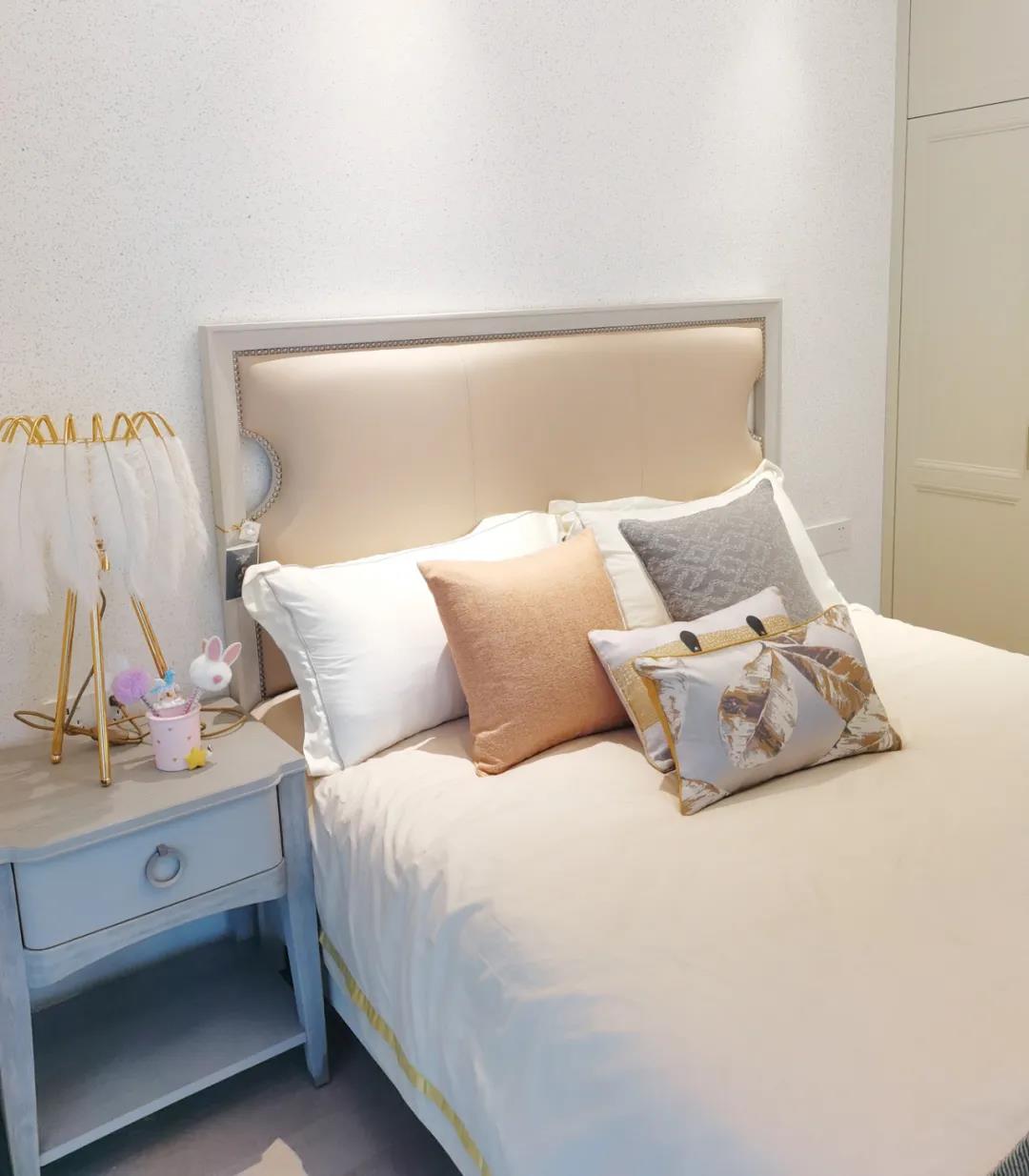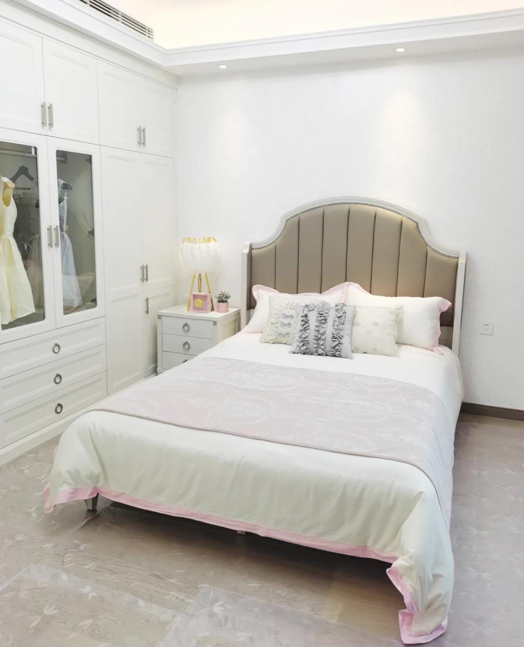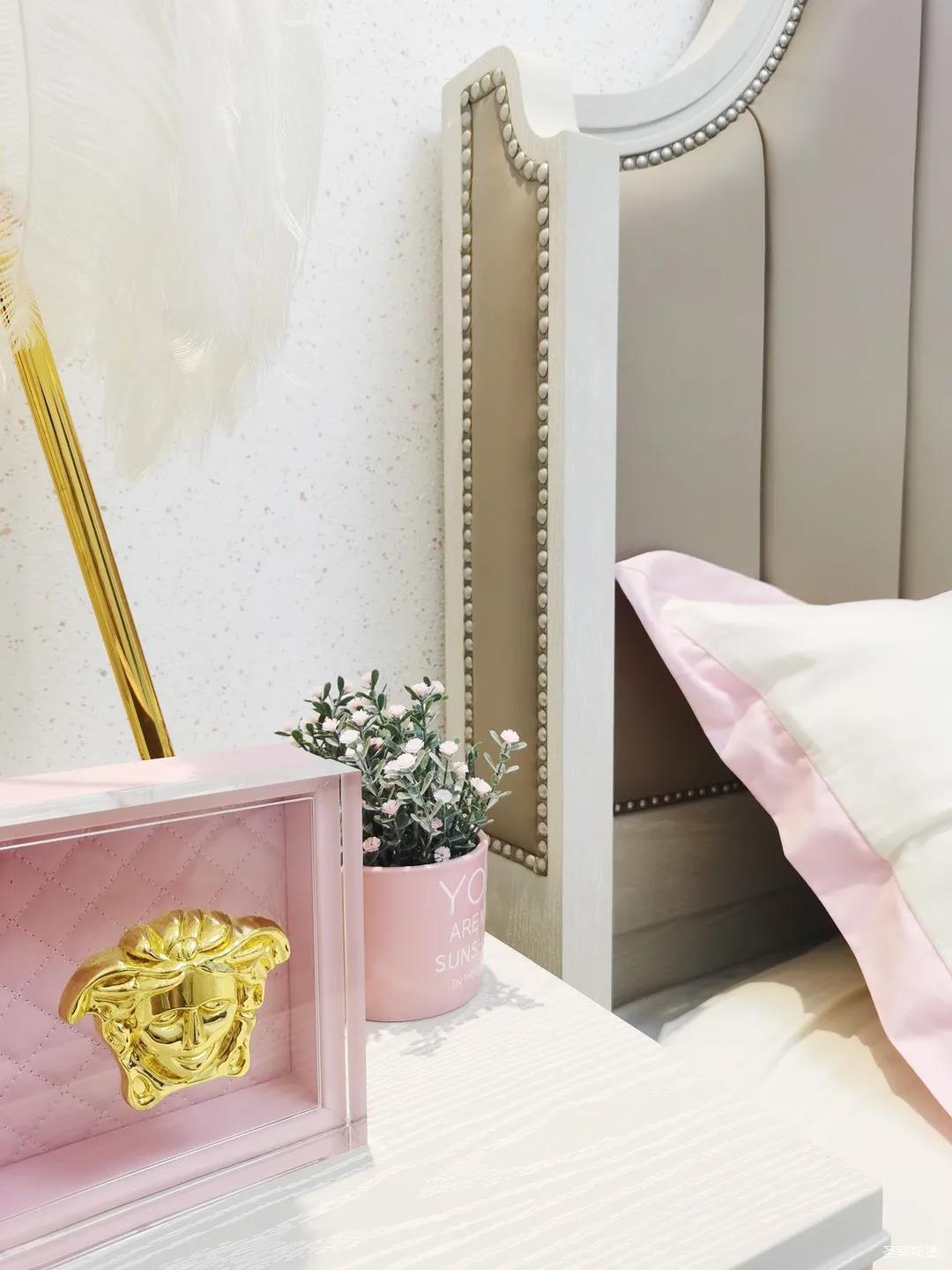 少女粉軟包床屏搭配仙氣十足的羽翼臺(tái)燈,讓空間顯得尤為夢幻。功能與顏值兼具的定制衣柜,與溫柔的空間相得益彰,簡單優(yōu)雅的同時(shí)也不失童趣。