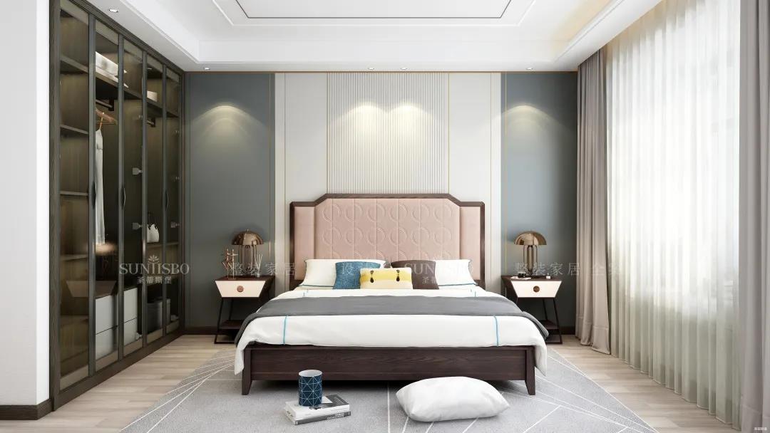 次臥床頭是現(xiàn)代感十足的格柵設(shè)計(jì),簡(jiǎn)約精致又頗具深度朦朧感。豎條紋的格柵還能起到拉伸視覺(jué)的作用,主觀上提高了空間的開(kāi)闊感。定制衣柜則根據(jù)空間整體的簡(jiǎn)約調(diào)性,將開(kāi)放式與隱蔽收納五五分,散發(fā)出高貴沉穩(wěn)的優(yōu)雅氣質(zhì),和生活品味形成了恰到好處的平衡。