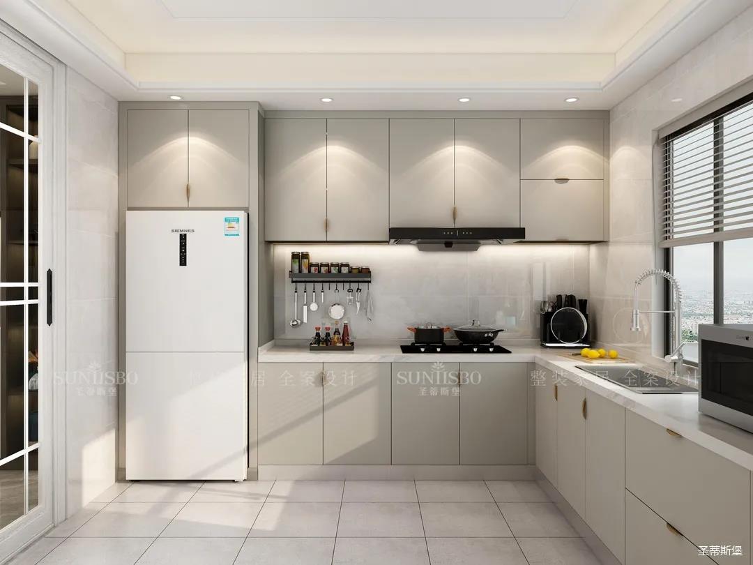 客餐廳、廚房的極簡(jiǎn)風(fēng)格和諧統(tǒng)一,鑒于現(xiàn)代家庭中日益增加的廚房電器設(shè)備,設(shè)計(jì)師在用廚動(dòng)線上頗為用心,L型的動(dòng)線將生活習(xí)慣自然的融入整體家居之中。保持著中性簡(jiǎn)約的調(diào)性,運(yùn)用溫潤(rùn)的實(shí)木材質(zhì)與剛毅的線條,營(yíng)造出摩登時(shí)尚的氛圍。將廚房區(qū)域自然融入整體家居之中。保持著中性簡(jiǎn)約的調(diào)性,用溫潤(rùn)的原木材質(zhì)或是圓潤(rùn)的曲線線條,平衡空間的冷峻。