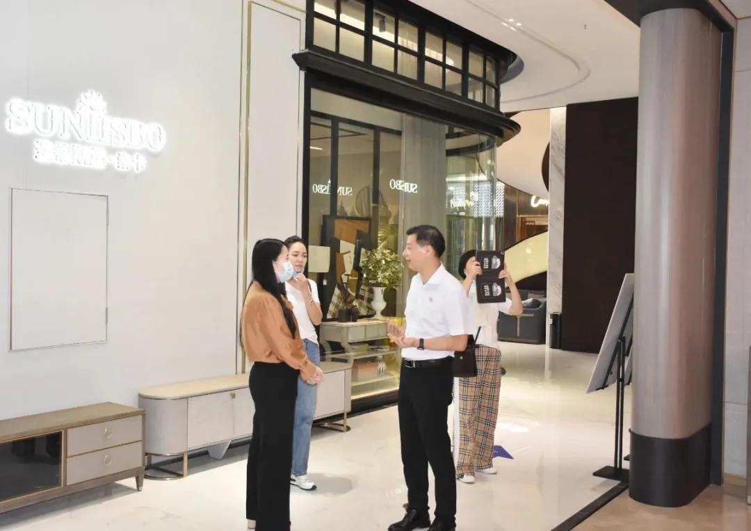 展會期間,全國家居建材連鎖巨頭—紅星美凱龍集團(tuán)鄭總一行蒞臨圣蒂斯堡營銷中心進(jìn)行參觀交流。集團(tuán)領(lǐng)導(dǎo)熱情接待,雙方進(jìn)行了深度洽談,并一起參觀了洛斯、里奧、洛卡等展廳。