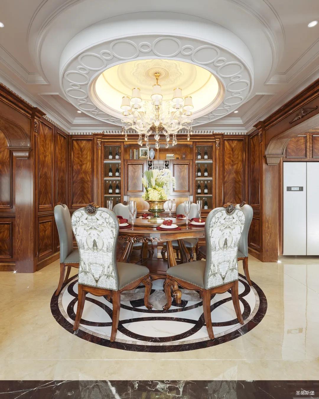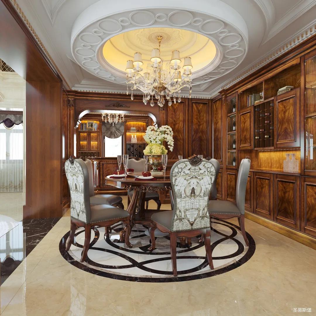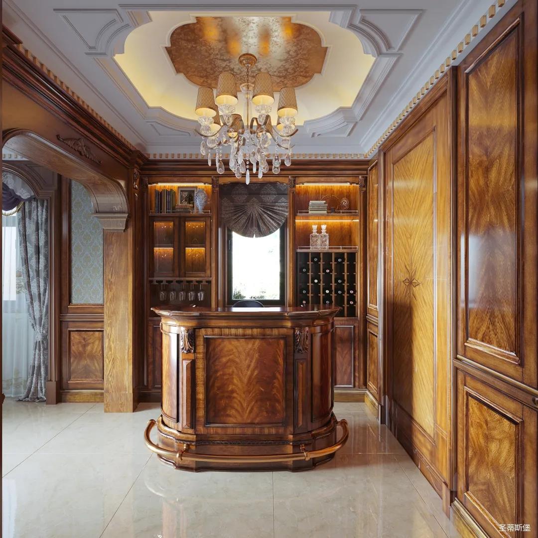 進(jìn)入玄關(guān),即刻被吸引,懷舊的啞光漆面上點(diǎn)綴著古典的輪廓線與精致的雕花,仿佛進(jìn)入了一座古老的森林城堡,神秘悠遠(yuǎn)。隨處可見(jiàn)的黃銅元素,不僅給室內(nèi)帶來(lái)了奢華質(zhì)感,也彰顯著主人好客氣質(zhì)。