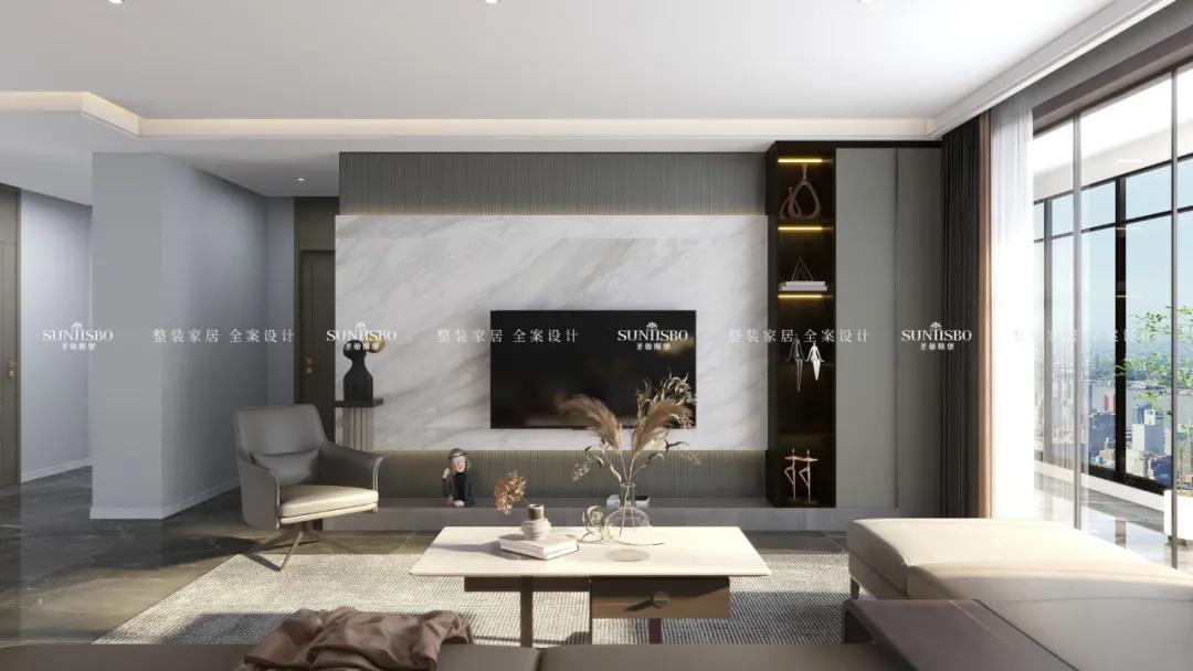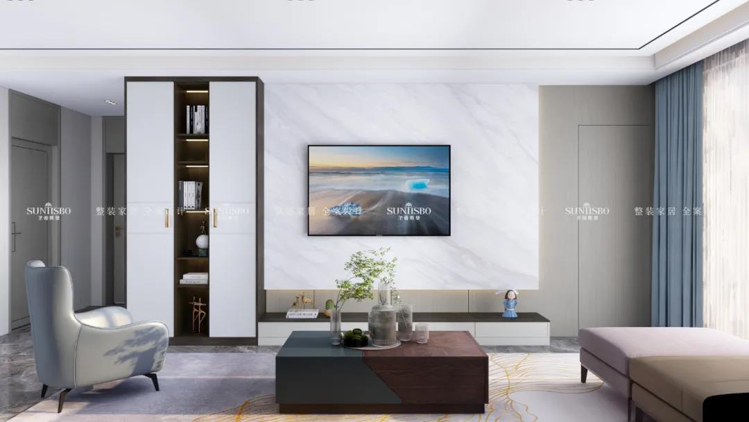 展示柜與電視柜設(shè)計(jì)成一個(gè)整體,