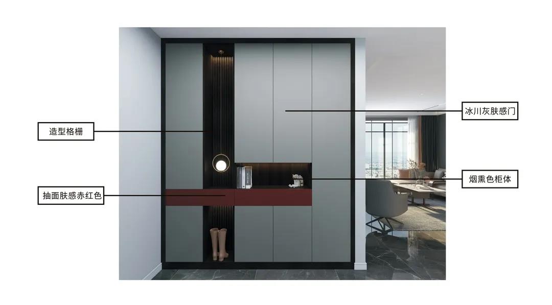 整體配色簡(jiǎn)約時(shí)尚,花色可選性多;材質(zhì)上采用新型高級(jí)材料——歐松板,通過(guò)UV漆工藝表面形成超級(jí)膚感膜,使接觸面舒適細(xì)膩。同時(shí)使用線條感簡(jiǎn)潔利落的拉手作為設(shè)計(jì)元素,子母拉手的設(shè)計(jì)別具一格,體現(xiàn)了設(shè)計(jì)師的用心;搭配燈光和功能件,使產(chǎn)品極具展示效果與功能性。