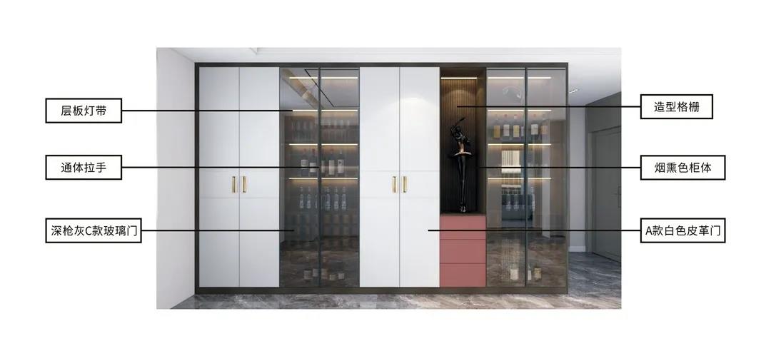 標(biāo)配門型:A款皮革門、鋁框玻璃門、超級(jí)膚感門